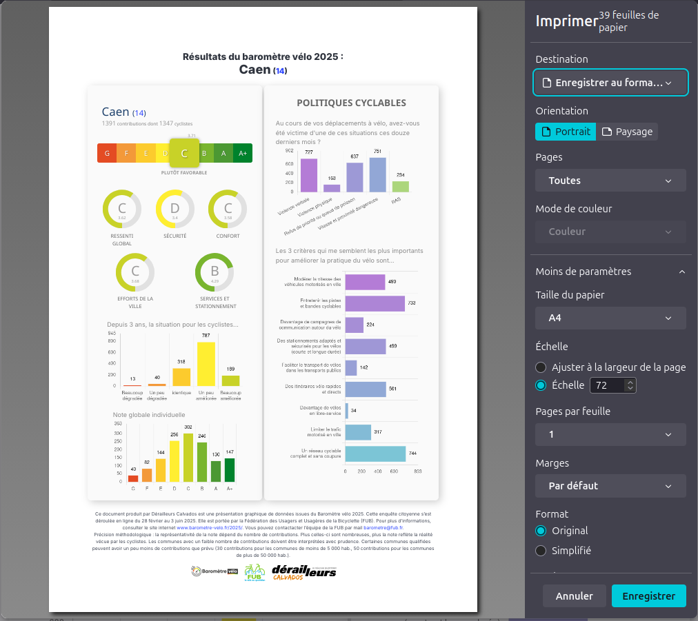 L'association Dérailleurs Calvados, membre de la FUB (Fédération des Usagers de la Bicyclette) met à disposition des associations, élus, techniciens et citoyens une présentation mise en forme des données brutes du baromètre vélo 2025. Les données brutes sont issues du Baromètre vélo 2025 et disponibles à ce lien.
